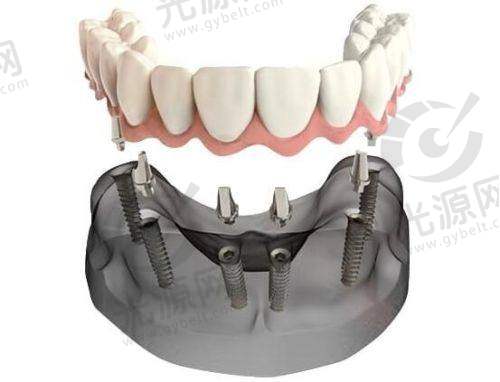 半口 ALL - ON - 4 | 4 颗植体支撑 12 颗牙 | 4 万 - 8 万元 | 骨量中度萎缩的中年人 | 当天戴临时牙 |